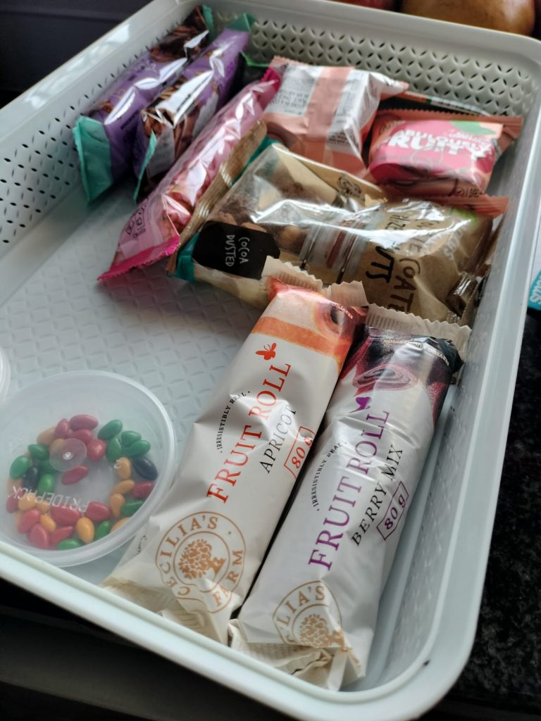Stock snack box supplies with healthy quick fill items and pre-pack some snacks for time saving in the week. This makes packing snack boxes so much easier. My blog on snack boxes has some great tips.